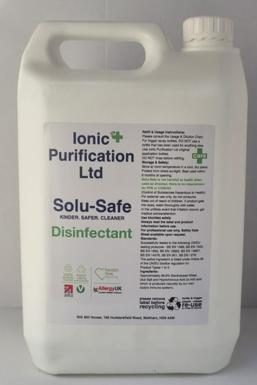 Successfully tested to the following UK/EU testing protocols - BS EN 1499, BS EN 1500, BS EN 1650, BS EN 13623, BS EN 13697, BS EN 14476, BS EN 901, BS EN 1276. The active ingredient is listed under Article 95 of the UK/EU biocide regulation for Product Types 1 to 5